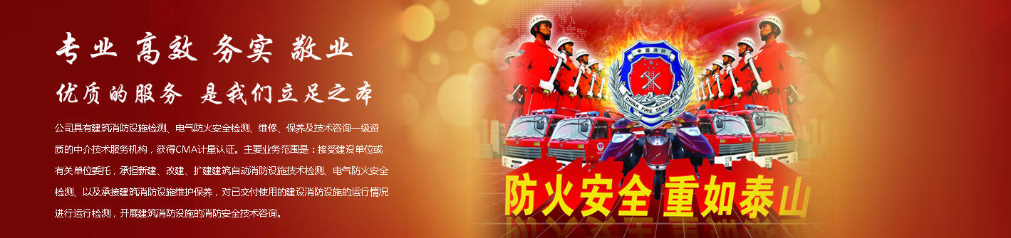 公司具有建筑消防設(shè)施檢測、電氣防火安全檢測、維修、保養(yǎng)及技術(shù)咨詢一級(jí)資質(zhì)的中介技術(shù)服務(wù)機(jī)構(gòu),獲得CMA計(jì)量認(rèn)證。主要業(yè)務(wù)范圍是:接受建設(shè)單位或有關(guān)單位委托,承擔(dān)新建、改建、擴(kuò)建建筑自動(dòng)消防設(shè)施技術(shù)檢測、電氣防火安全檢測、以及承接建筑消防設(shè)施維護(hù)保養(yǎng),對已交付使用的建設(shè)消防設(shè)施的運(yùn)行情況進(jìn)行運(yùn)行檢測,開展建筑消防設(shè)施的消防安全技術(shù)咨詢。公司設(shè)辦公室、總工辦、財(cái)務(wù)部、檢測部、維保部等職能機(jī)構(gòu),擁有一